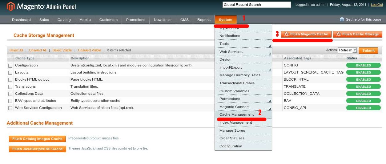 Method 2: Clearing Magento cache from Magento admin panel:-