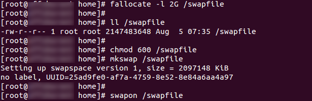#fallocate -l 2G /swapfile