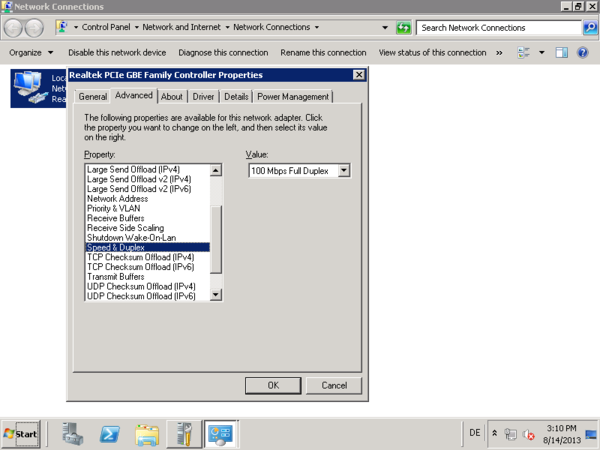 Currently, your network card should be set to 100 Mbit Full Duplex, and auto-configuration (auto-negotiation) should be off, Let us see how to enable auto negotiation