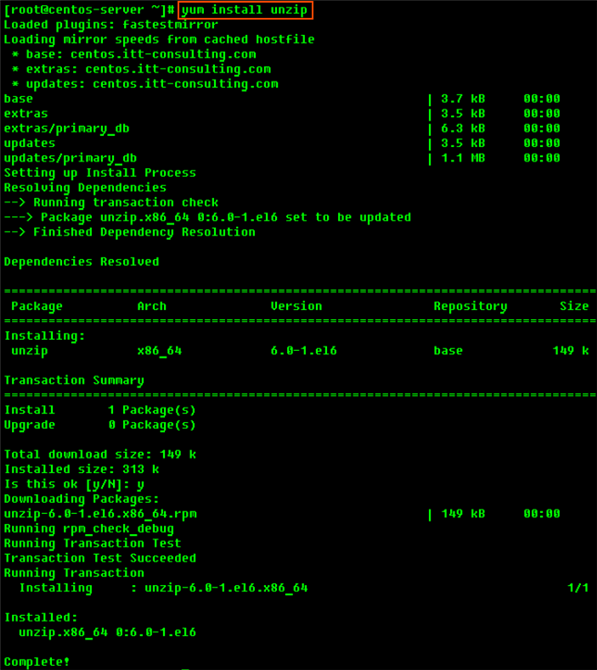 # yum install unzip