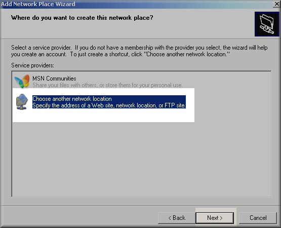 7 : Select the Choose another network location option and click Next.