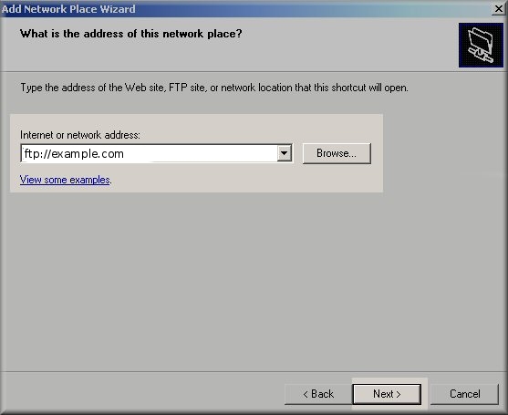 8 : Enter the ftp address for your domain, e.g. ftp://example.com Click Next to continue.