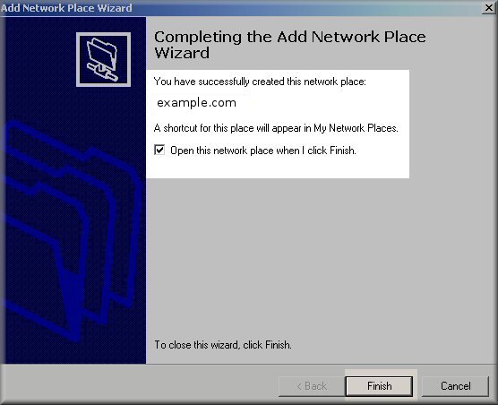12. Make sure Open this network place when I click Finish is checked, and click Finish.