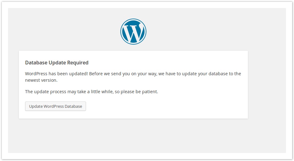 7. If you had an older WordPress version in the domain, you can see the following page when accessing the website or when logging into WordPress Admin since it has been upgraded.